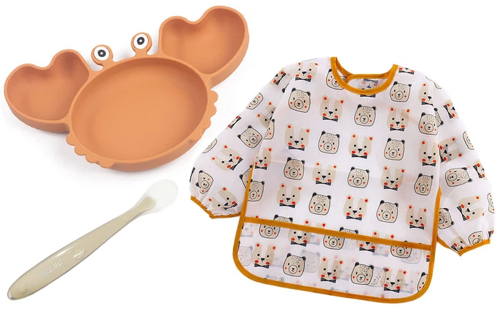 Набір посуду 2Life Трисекційна тарілка Краб Y11 ложка та слинявчик-нагрудник з оленями n-12911