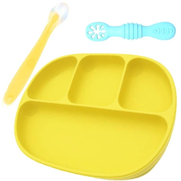 Набор Y1 силиконовая полукруглая 3-х секционная тарелка ложка бутылка-ложка Белый n-10023