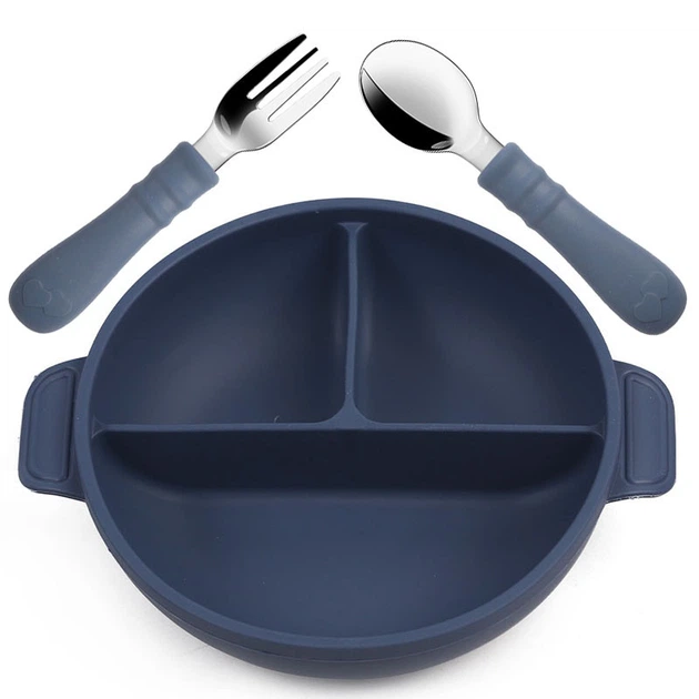 Набір дитячого посуду 2Life Y10 глибока трьохсекційна тарілка та ложка виделка Синій n-12082