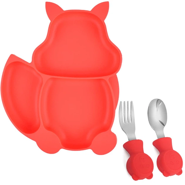Набір 2Life трьохсекційна тарліка Білка Y6 і металеві ложка виделка Червоний n-11932