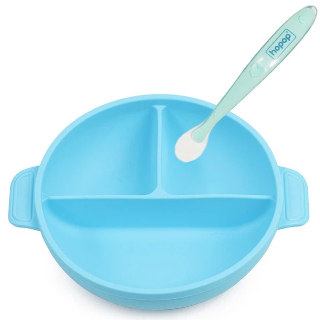Глибока трисекційна силіконова тарілка 2Life Y9 і Силіконова ложка Блакитний с зеленим n-11839