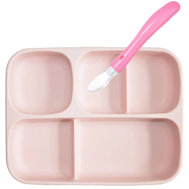Дитяча силіконова чотирисекційна тарілка та Термочутлива ложка-вилка Рожевий (vol-10239)