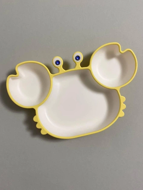 Силіконова секційна дитяча тарілка на присосці "Краб з білою серединкою" Жовтий