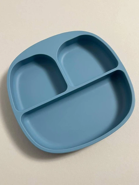 Секційна тарілка силіконова дитяча на присосці для першого прикорму, Хакі, 1 шт.