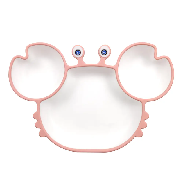 Тарілка дитяча силіконова секційна на присосці (Троянда Кварц ) , посуд для дітей