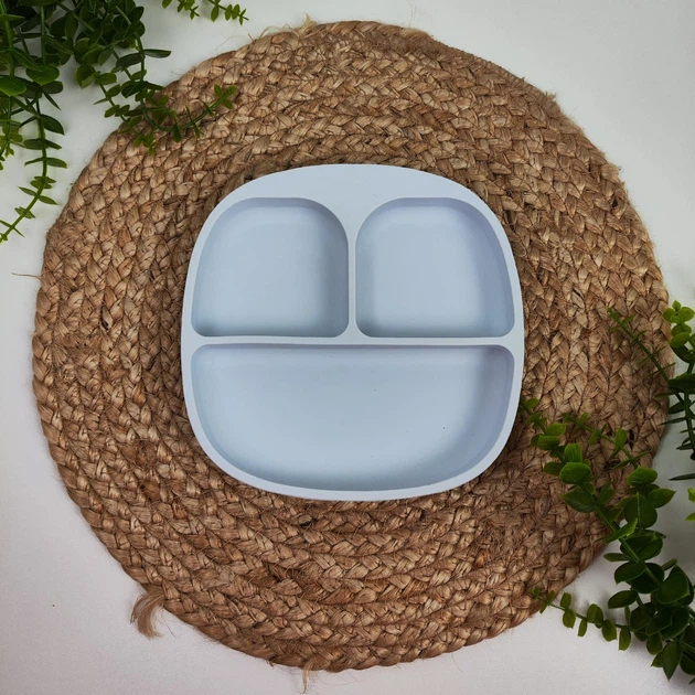 Тарілка дитяча силіконова секційна на присосці квадратна Блакитно-сіра