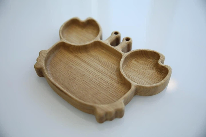 Дерев'яна дитяча тарілка Беззубик з ясена, екологічний посуд для дітей MDA 21х17,5х2,5 см (WDB-19.1)