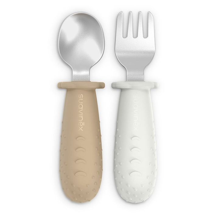 Набір дитячого посуду Suavinex Colour Essence столові прибори зі сталі (ложка, виделка) бежеві (402924) 402924