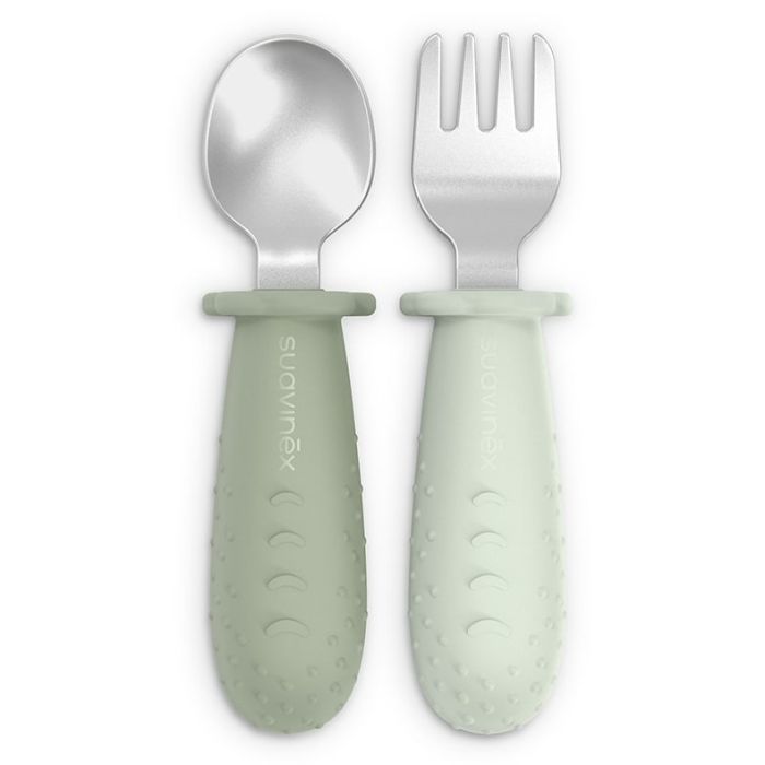 Набір дитячого посуду Suavinex Colour Essence столові прибори зі сталі (ложка, виделка) зелені (402912) 402912