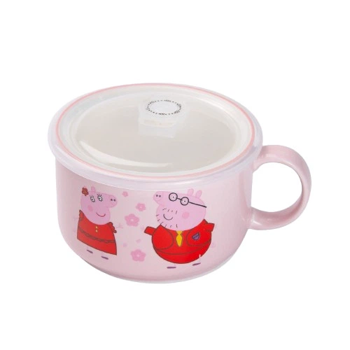 Миска для локшини керамічна 770 мл із герметичною кришкою рожева HP-15-12