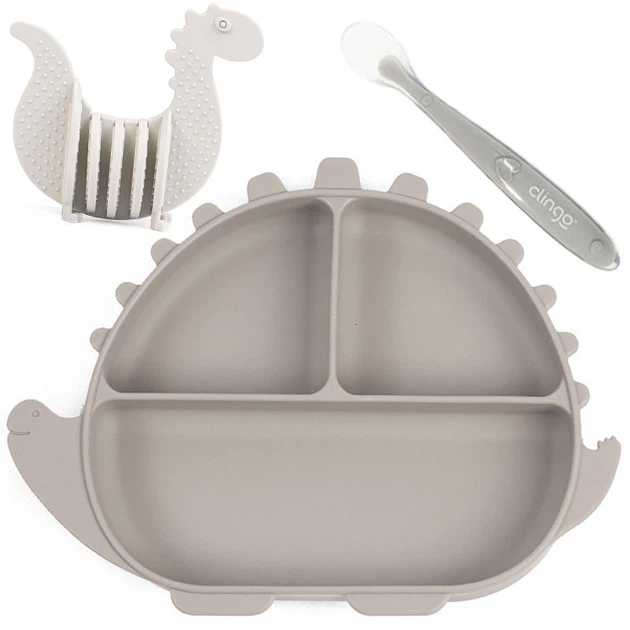 Набір дитячого силіконового посуду 2Life Y20 для першого підгодовування з іграшкою-прорізувачем Динозавр Сірий v-13394