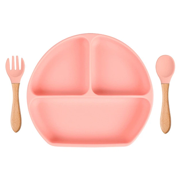 Тарілка силіконова секційна на присосці та прилади з дерев'яною ручкою Персикова TSK3-Y12