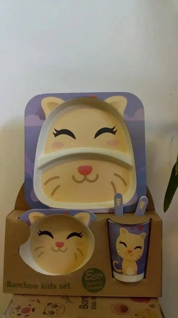 Набір дитячого бамбукового посуду Stenson кіт еко-комплект 5 предметів