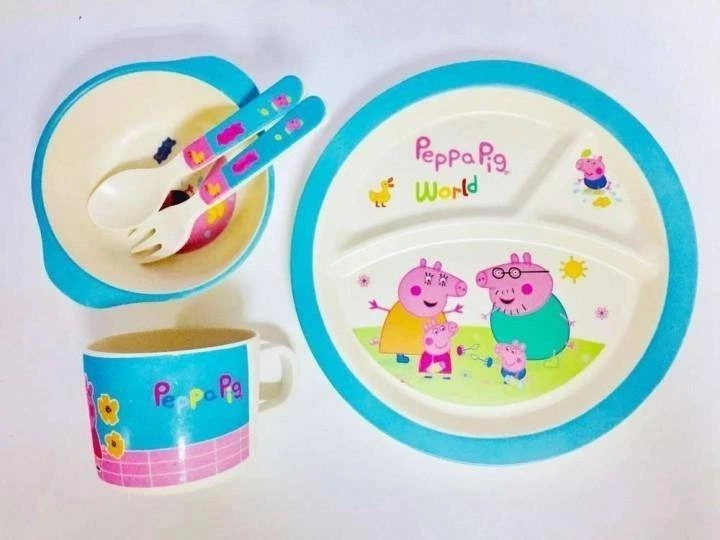Набір дитячого посуду бамбуковий 5 приладів Свинка Пеппа 5 в 1 Eco Bamboo эко посуда