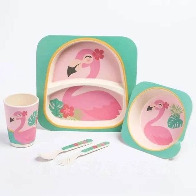 Набір дитячого бамбукового посуду Stenson посуд з еко фламінго