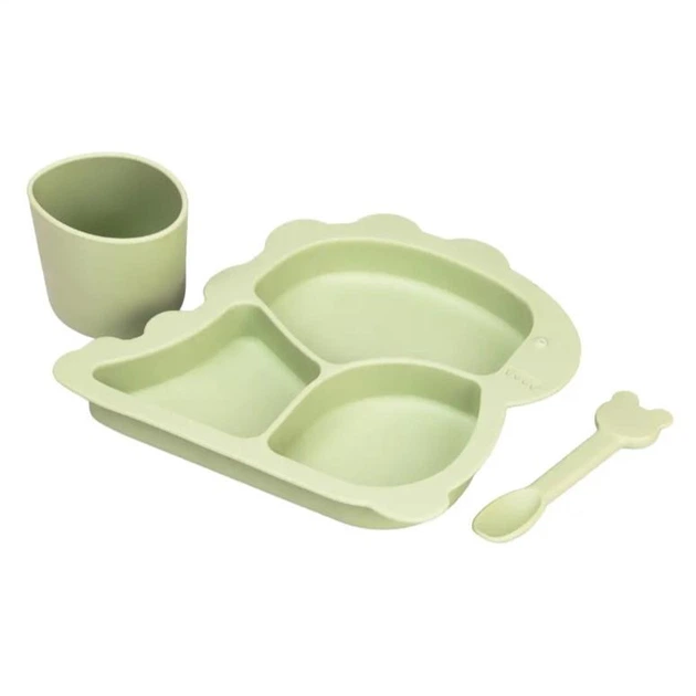 Набір силіконового посуду для годування дітей CookStyle Зелений Динозавр з присоскою 3 предмети для першого прикорму немовля