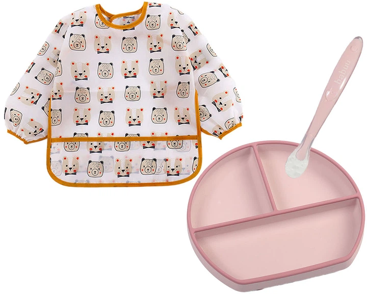Комплект 2Life слинявчик-нагрудник Ведмедики та Набір посуду Y26/19 Рожевий