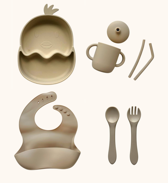 Набір дитячого силіконового посуду "Стартовий. Курчатко" Бежевий (2769134672)