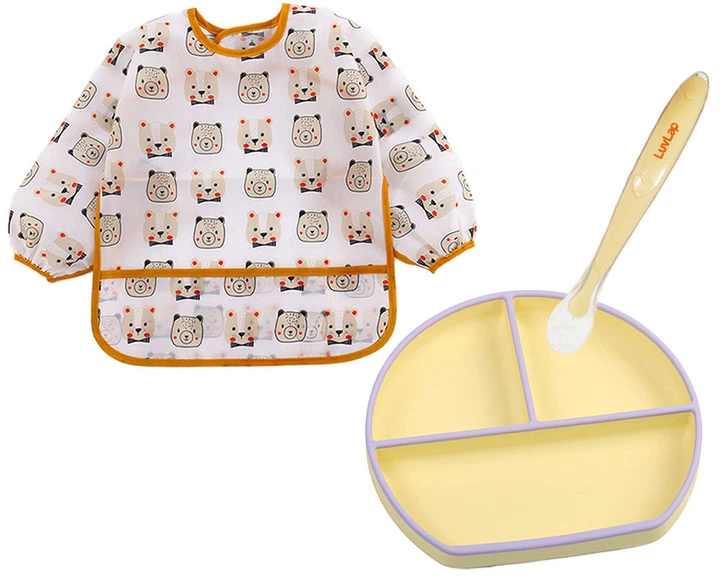 Комплект 2Life слинявчик-нагрудник Ведмедики та Набір посуду Y11/2 Жовтий v-11828
