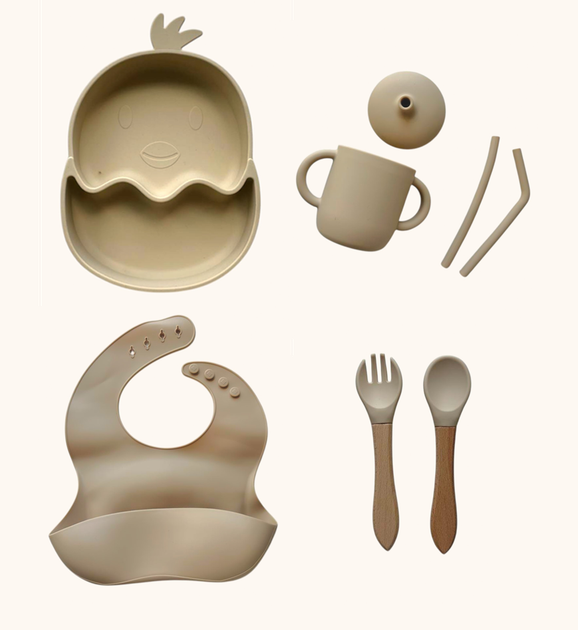 Набір дитячого силіконового посуду "Стартовий. Курчатко. Бук" Бежевий (2769134670)