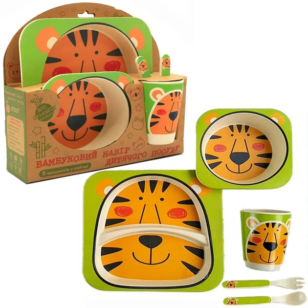 Набір дитячого бамбукового посуду 5 предметів у комплекті ECO product Plus Тигр