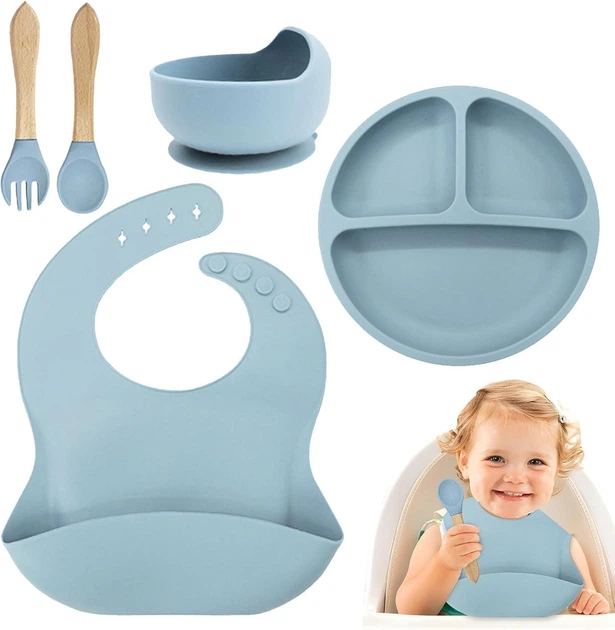 Набір для годування дітей 5 в 1 ICof силіконовий, посуд для немовлят блакитний (R051501)