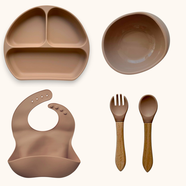 Набір дитячого силіконового посуду "Стартовий. Боул. Бук" Капучіно (2767041697)