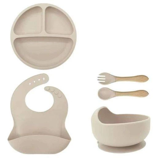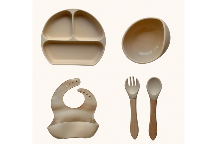 Набір для годування дітей силіконовий 5 в 1 Vexal посуд для немовлят бежевий (М1502)