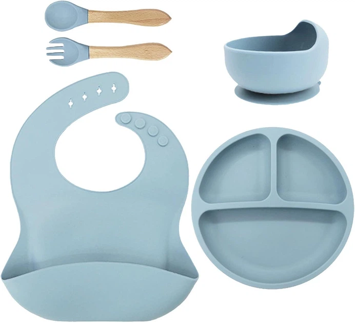 Набір для годування дітей силіконовий 5 в 1 Vexal посуд для немовлят блакитний (М1501)