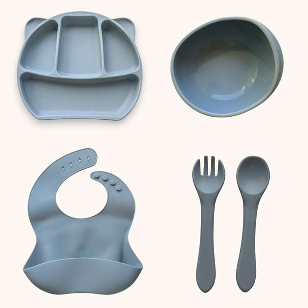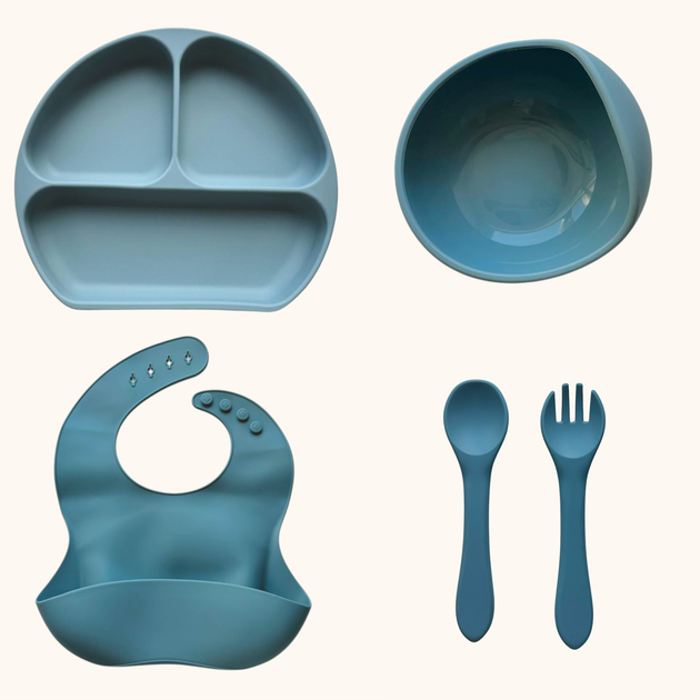 Набір дитячого силіконового посуду "Стартовий. Боул" Димний блакитний (2767041707)