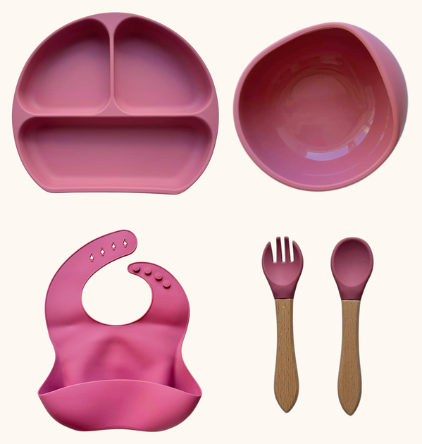 Набір дитячого силіконового посуду "Стартовий. Боул. Бук" Димна троянда (2767041699)