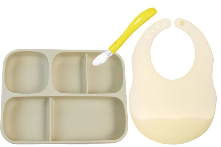 Набір посуду 2Life п'яти-секційна тарілка А5, ложка і слюнявчик Бежевий