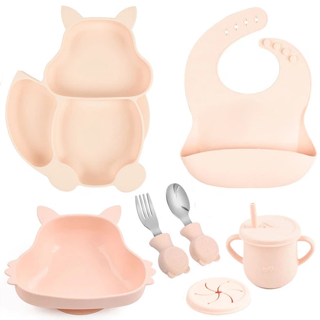 НабірY12сіліконової тарілки, слиньчик, тарілка глибока, ніжка виделка,бутилка,контейнер Персиковий (n-9847)