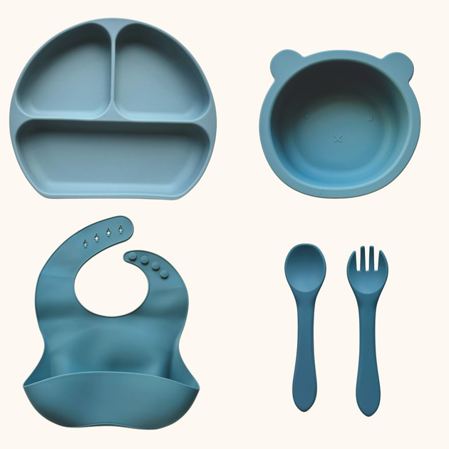 Набір дитячого силіконового посуду "Стартовий. Ведмедик" Димний блакитний (2767041689)
