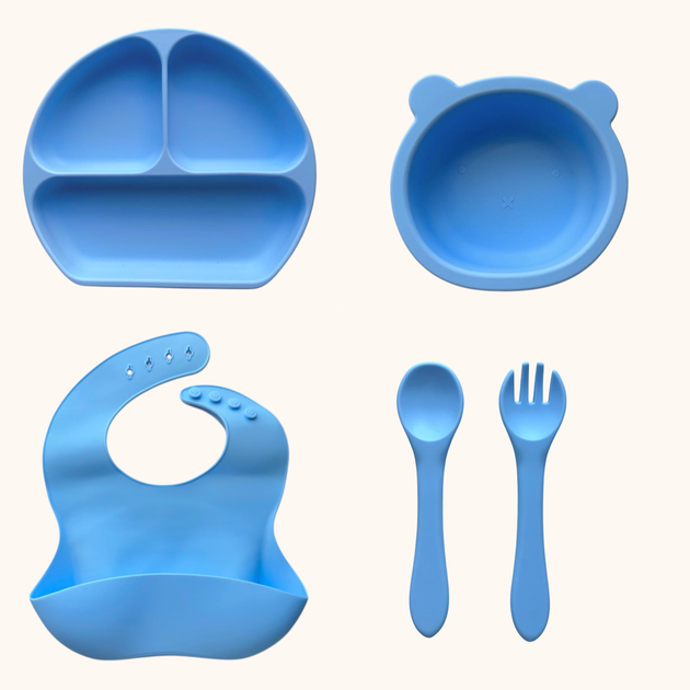 Набір дитячого силіконового посуду "Стартовий. Ведмедик" Блакитний (2767041692)
