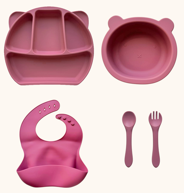 Набір дитячого силіконового посуду "Стартовий з вушками. Ведмедик" Димна троянда (2767041726)