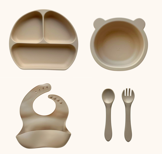 Набір дитячого силіконового посуду "Стартовий. Ведмедик" Бежевий (2767041684)