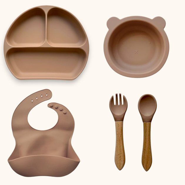 Набір дитячого силіконового посуду "Стартовий. Ведмедик. Бук" Капучіно (2767041679)