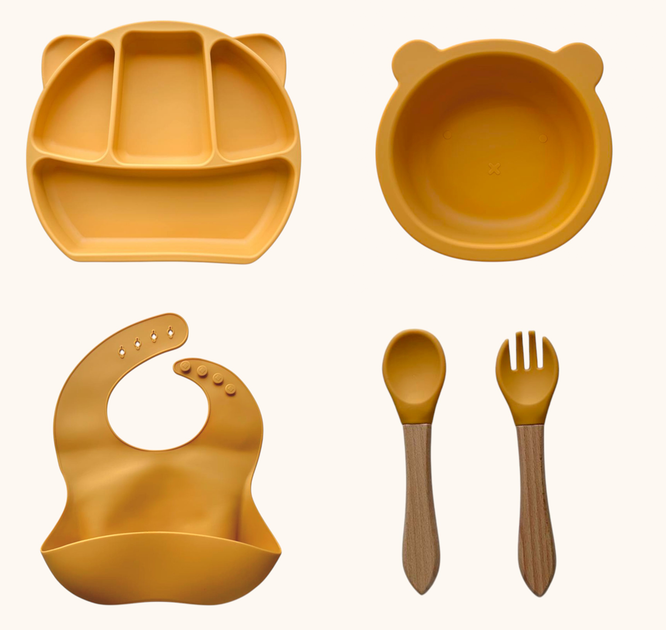 Набір дитячого силіконового посуду "Стартовий з вушками. Ведмедик. Бук" Гірчиця (2767041711)
