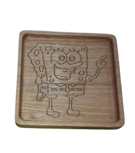 Дитяча тарілка з дерева "Губка Боб". Дитячий посуд із дерева. Дитячі тарілки. Декоративні тарілки