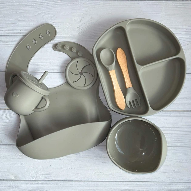 Дитячий силіконовий посуд Y2 прилади дерев'яні Newsun