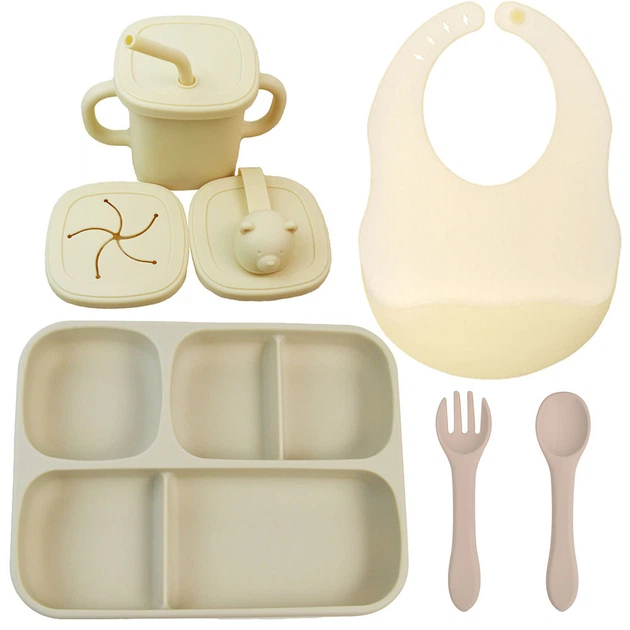 Набір посуду 2Life п'яти-секційна тарілка А4 ложка виделка Y15 поїльник і слюнявчик Бежевий