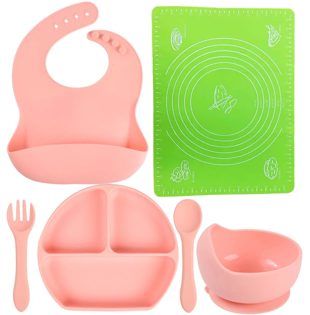 Набір силіконового посуду 2Life Y12 Білка для першого підгодовування дитини Рожевий n-12804