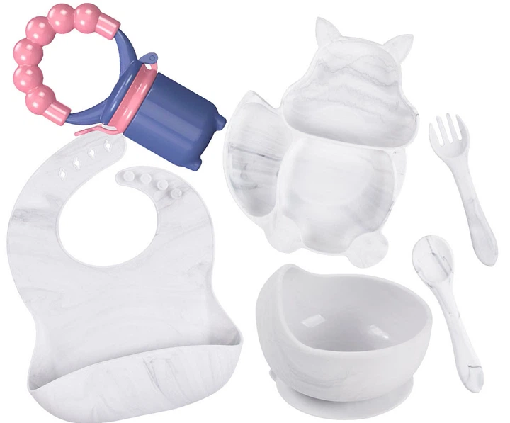 Набір силіконового посуду 2Life Y20 Білочка для першого підгодовування дитини Сірий v-12801