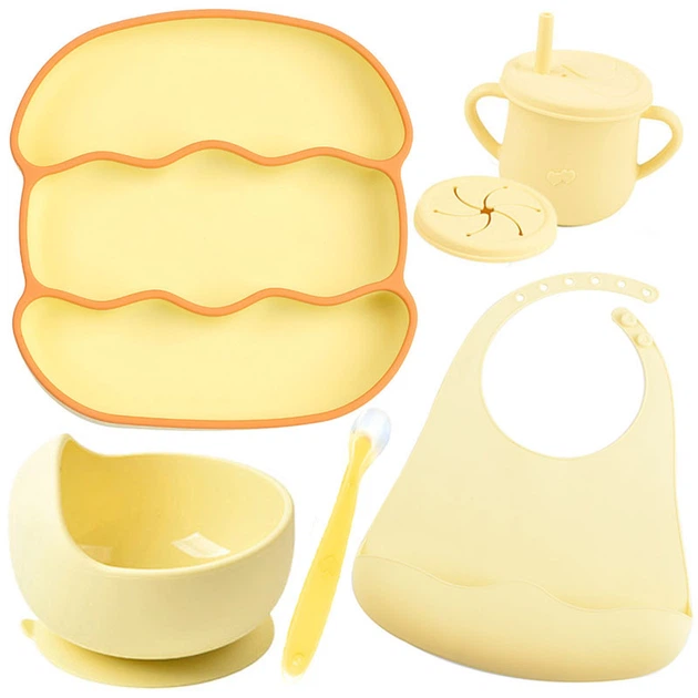 Набір дитячого силіконового посуду 2Life Хвиля Y11 з 7 предметів Жовтий v-12006