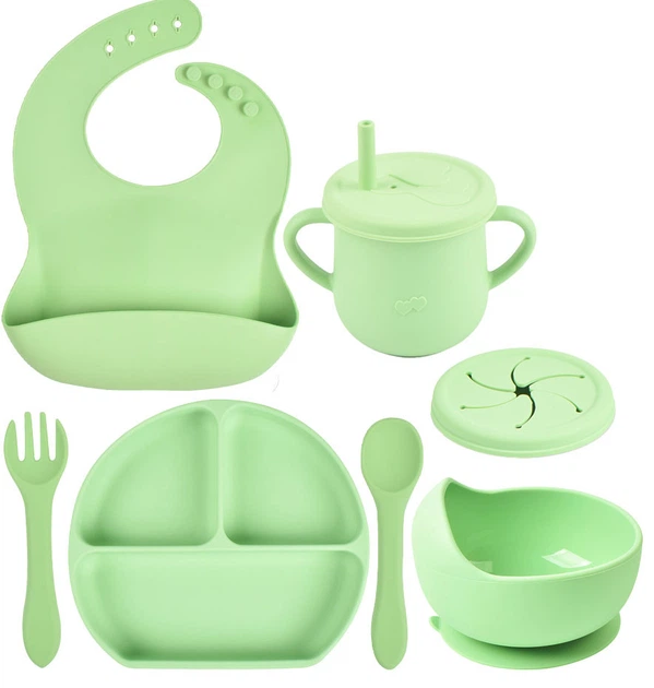 Набір Y3 синіконової тарілки, слиньчик, тарілка глибока, ложка, виделка, полководець з кришкою Зелений (vol-9835)