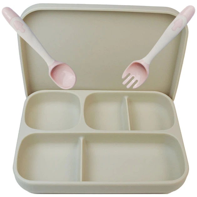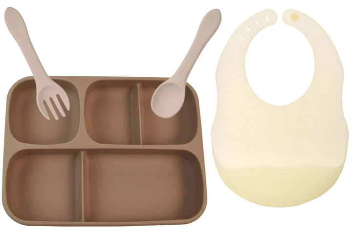 Набір посуду 2Life п'яти-секційна тарілка А6, ложка виделка Y24 і слюнявчик Бежевий