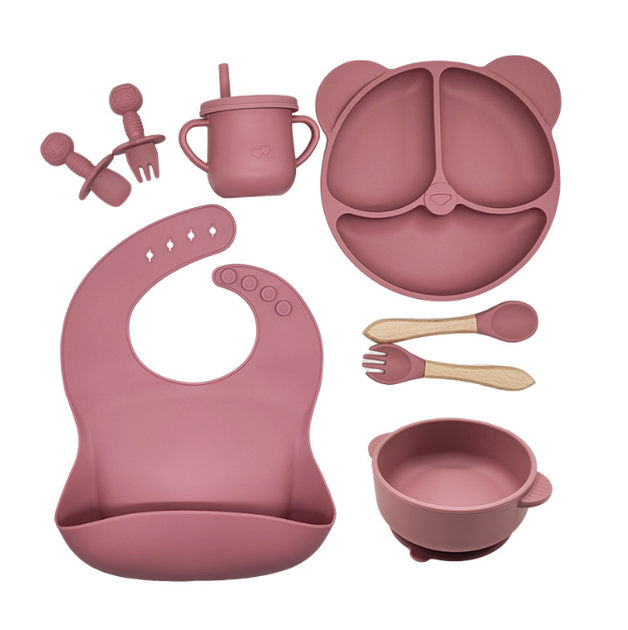 Дитячий набір силіконового посуду 8 предметів 2Life Рожевий (HCD-001)