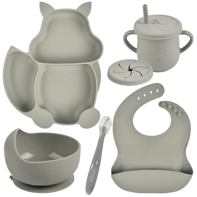 Силіконовий посуд 2Life Y22 Білка для першого підгодовування дитини Сірий n-12806