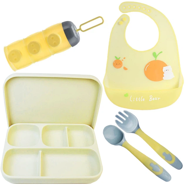 Набір посуду 2Life п'ятисекційна тарілка А5 з кришкою прилади слинявчик Жовтий контейнер длясуміщі v-11872